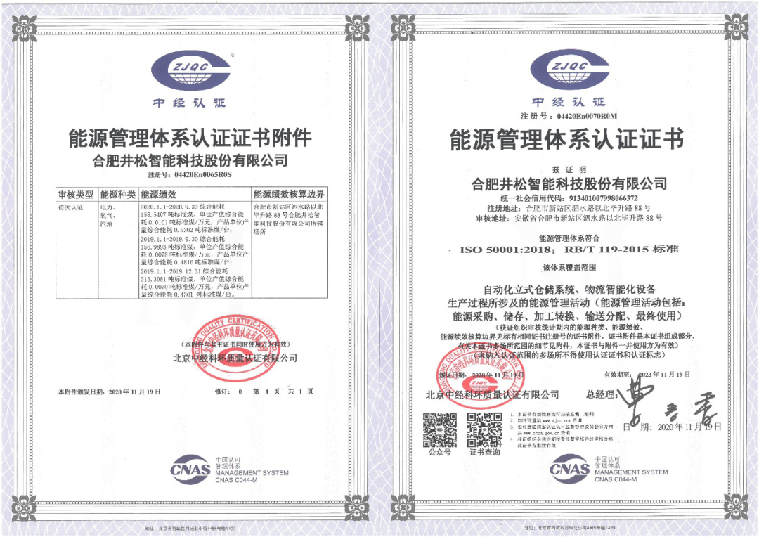 3、2020年获得ISO质量、环境、职业健康安全体系认证的基础上,新获得“能源管理体系认证”证书。