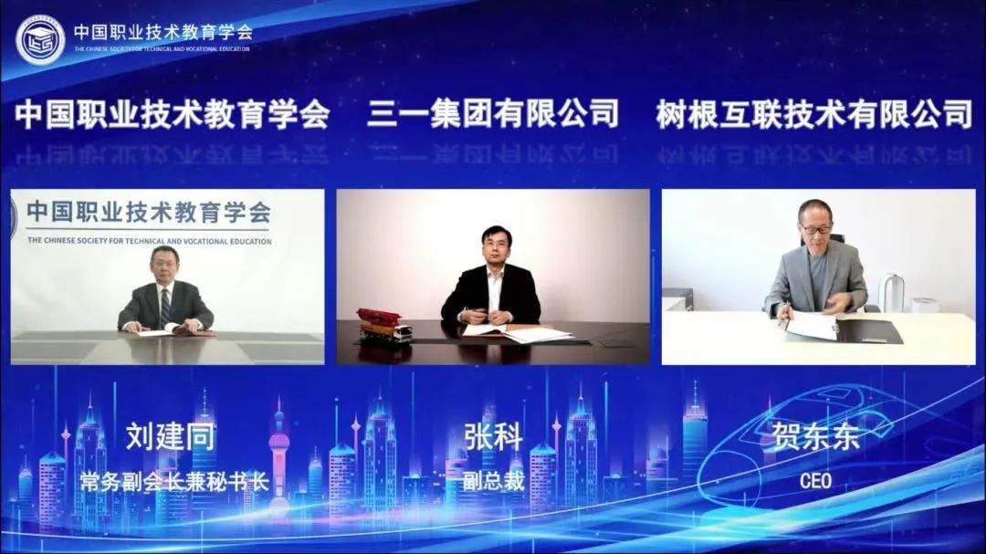 会上,三一集团、树根互联与中国职业技术教育学会签署战略合作,围绕智能制造、产业互联网、现代制造服务业等方面,以提升职业教育适应性为出发点,汇聚三方优势资源,对接“十四五”期间国家战略需求,服务制造强国、科技强国、人才强国、教育强国、数字中国等强国建设。