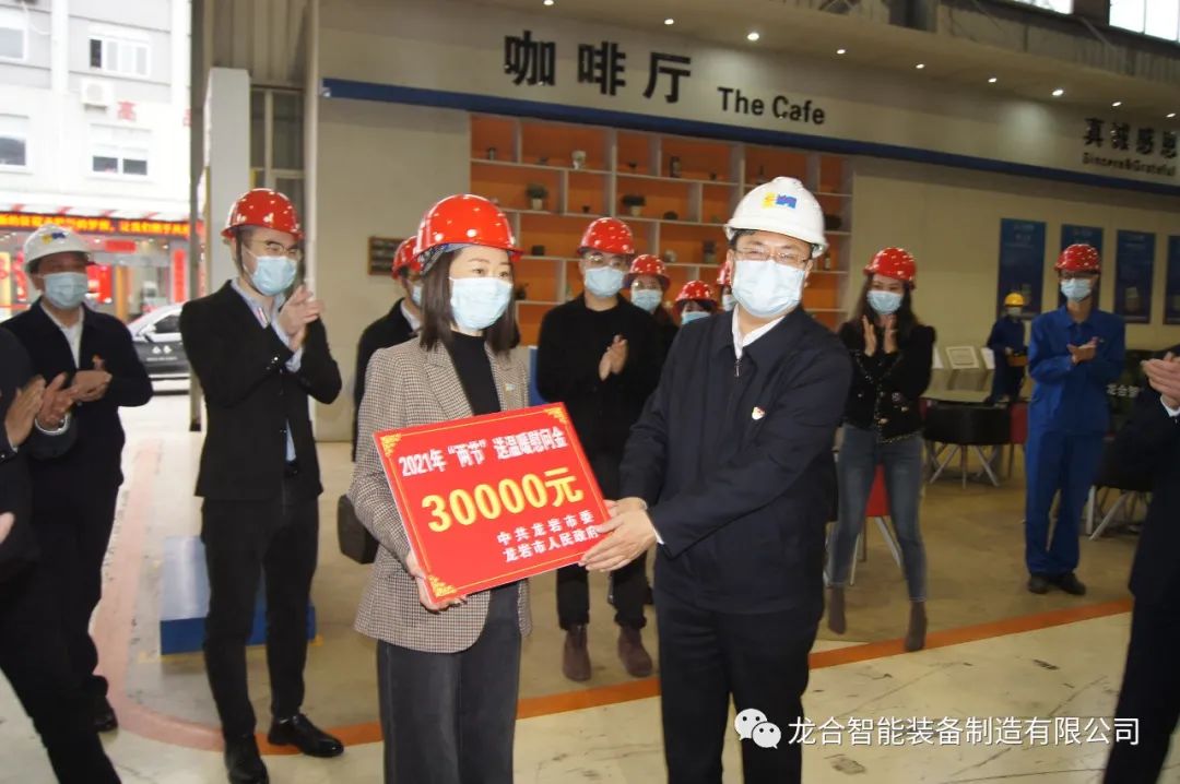 牛转乾坤春浩荡,人逢喜庆气昂扬。2月9日上午,在辛丑年春节来临之际,福建省龙岩市委书记李建成带队深入龙合智能,向春节期间坚守岗位的一线员工及积极响应党中央及国家关于疫情防控的号召、留岩过年的外省籍员工送上新春的问候和祝福。