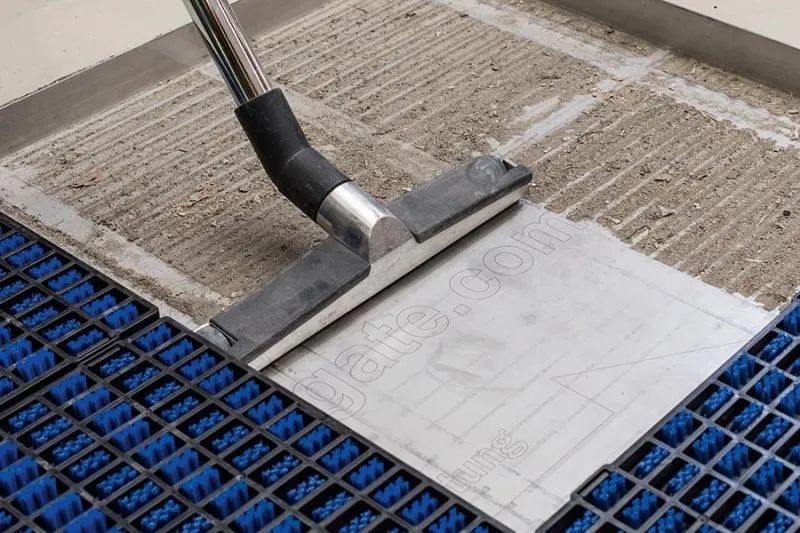 虽然客户经常告知我们轮胎自动清洁系统的优异清洁成效,我们希望有客观科学的分析能证明它。为了达成这个目标,我们与弗劳恩霍夫IPA研究所合作,并研发出一套适当的检验设定。在检验过程里,只须正常驶过或踩过“轮胎自动清洁系统”,大轮胎、小轮子和鞋底都能够被清洁。经由检验尘土附着物,比如轮胎,在通过清洁区域之前与之后的尘土附着,发现附着的尘土都能够被捕获,加上电子显微扫瞄设备的辅助,让检验里不只有量的指标,还有质的指标。