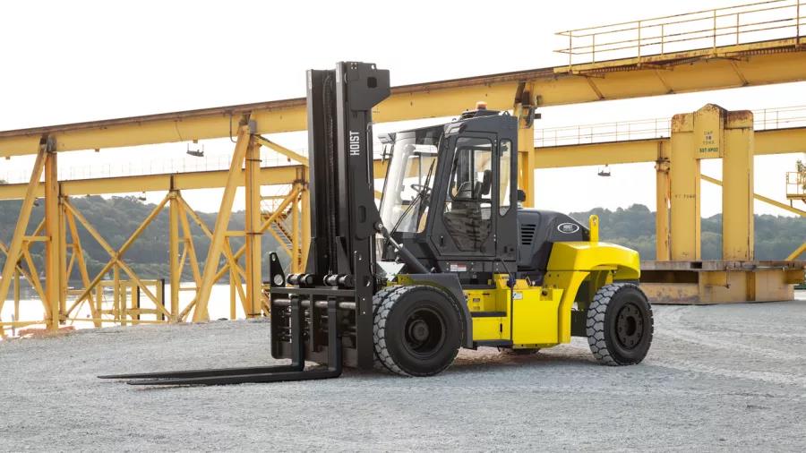 Hoist PV系列叉车由康明斯(Cummins)4缸173 马力柴油发动机驱动。电子控制的Dana TE-10变速箱与重型驱动桥搭配使用,可在大容量和室外应用中实现耐用性,发动机保护装置和大容量冷却系统提供了可靠性。叉车还配备了7英寸TFT触摸屏显示屏,并提供了关键的操作见解,而指尖控件则使操作员能够更加轻松自如地调节液压功能。
