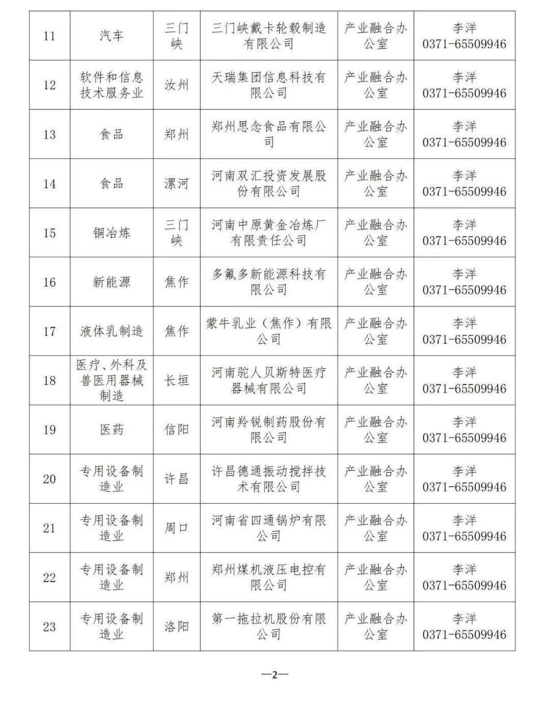 附:龙头企业联系服务名单!
