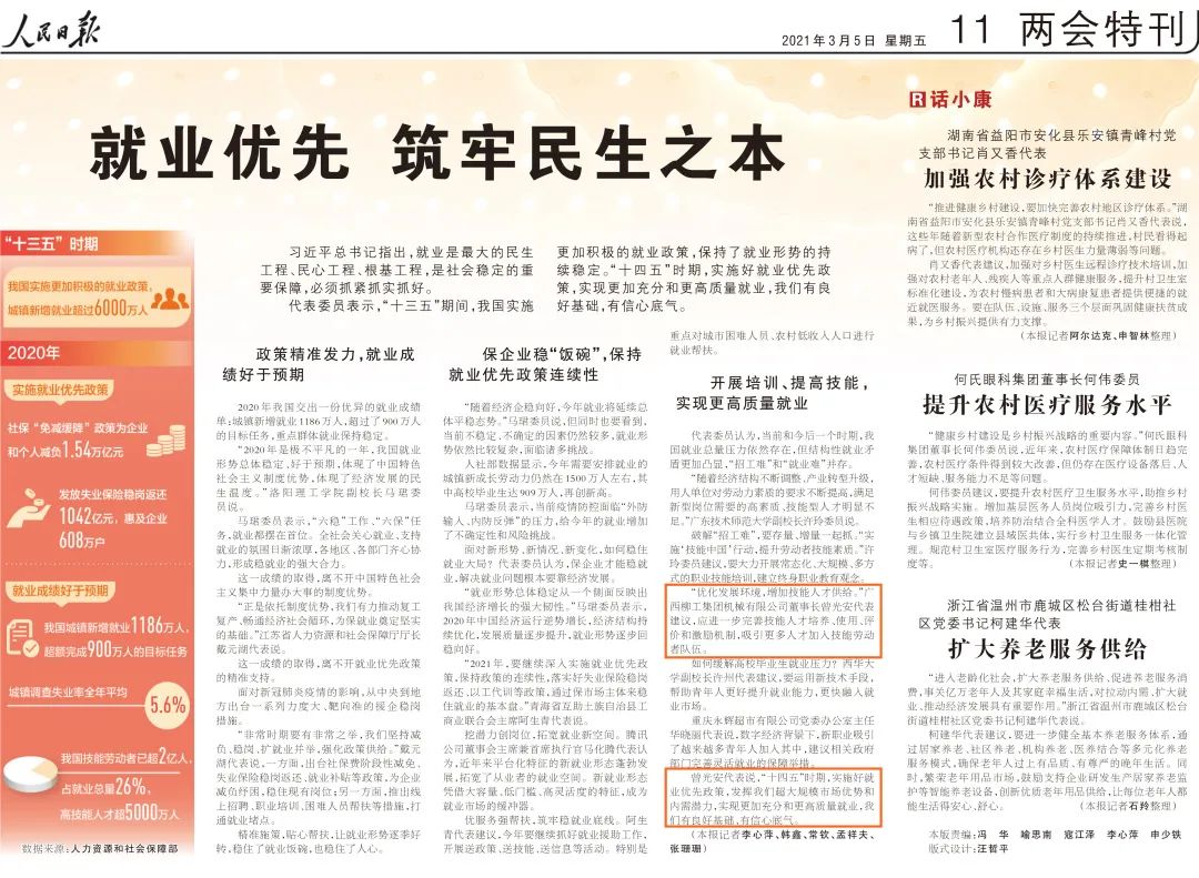 曾光安代表说,“十四五”时期,实施好就业优先政策,发挥我们超大规模市场优势和内需潜力,实现更加充分和更高质量就业,我们有良好基础、有信心底气。