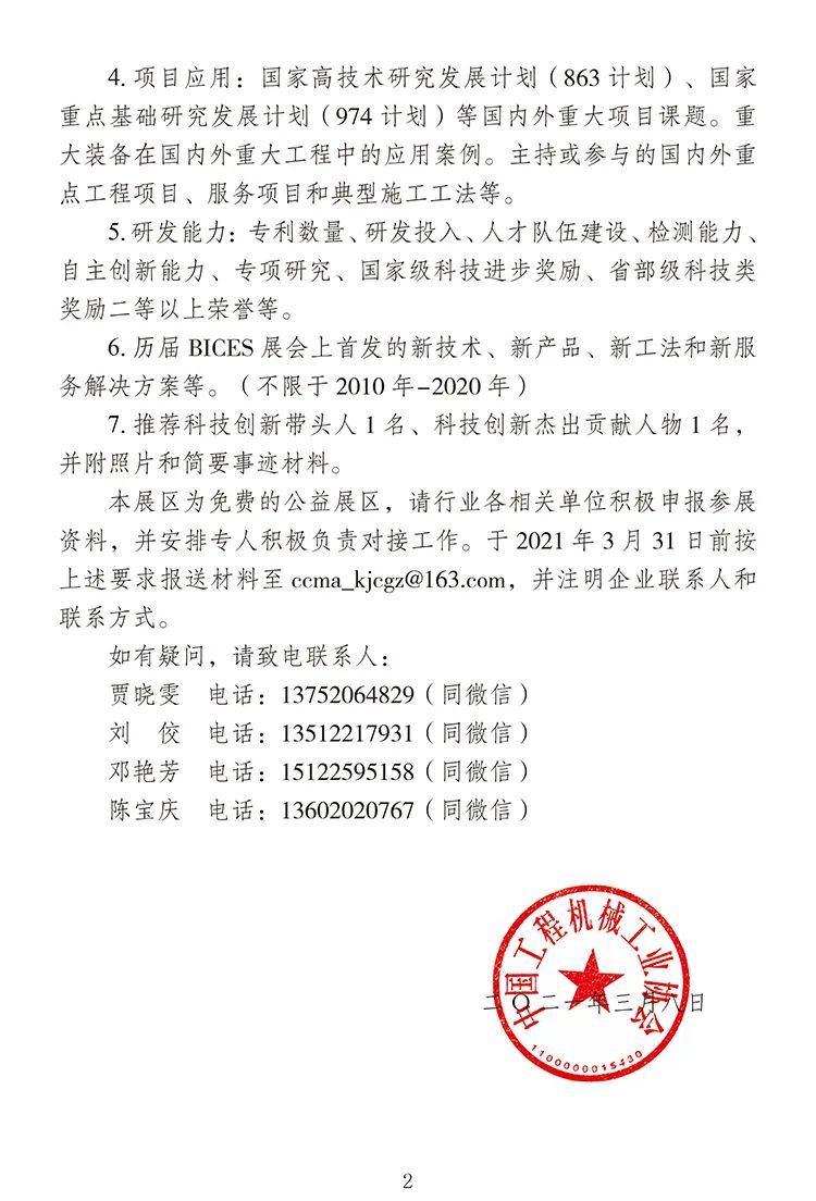 关于BICES 2021“工程机械科技创新成果展区”资料征集的通知