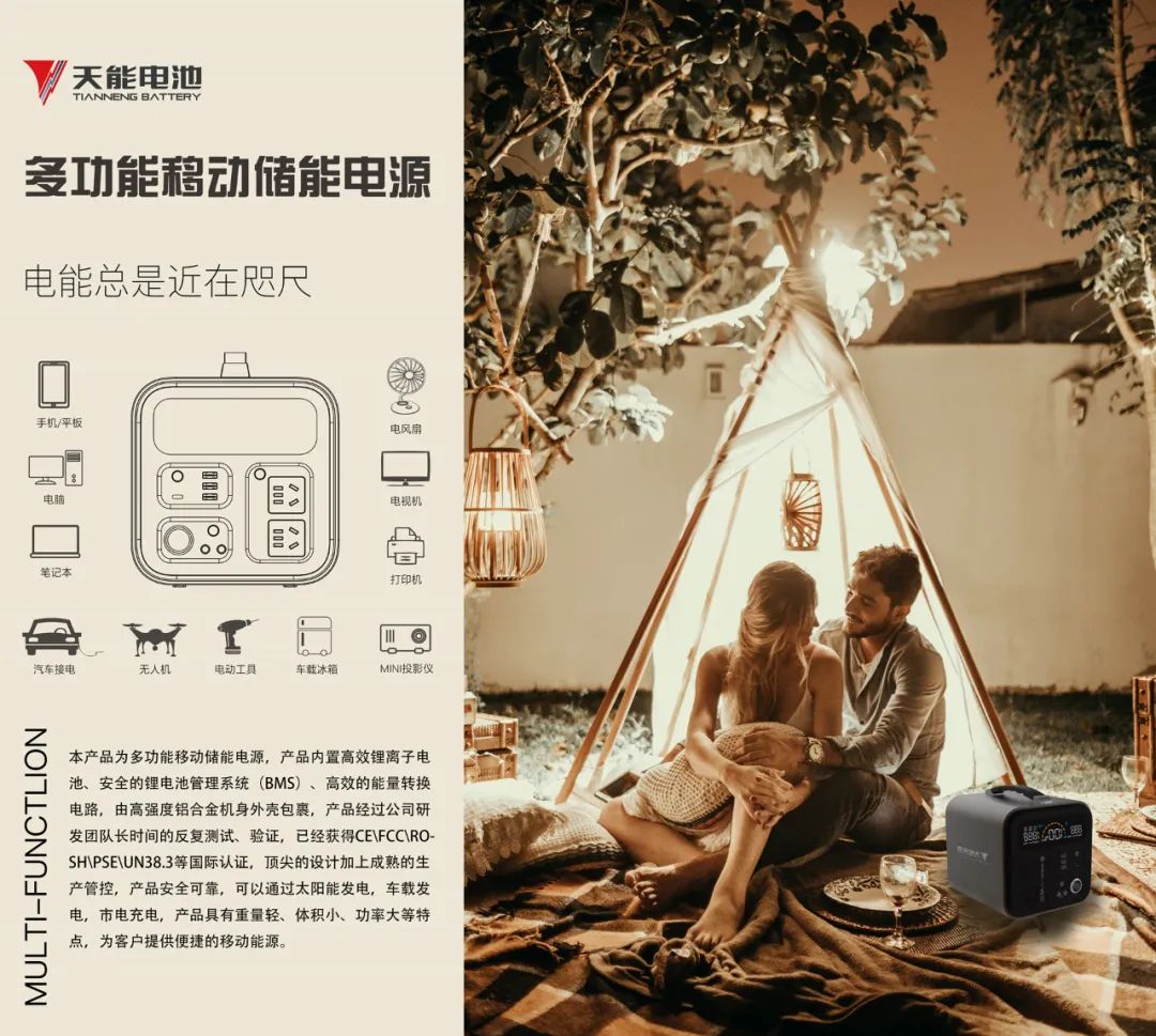 从通过技术创新不断突破电动车续航极限,到储能电站、微电网、离网光储发电系统的建设与推广,天能一直在为缓解电量焦虑而做出努力。多功能移动储能电源的推出,更是天能在民用储能领域做出的新尝试,旨在有效缓解户外用电焦虑,打造高品质户外用电生活。