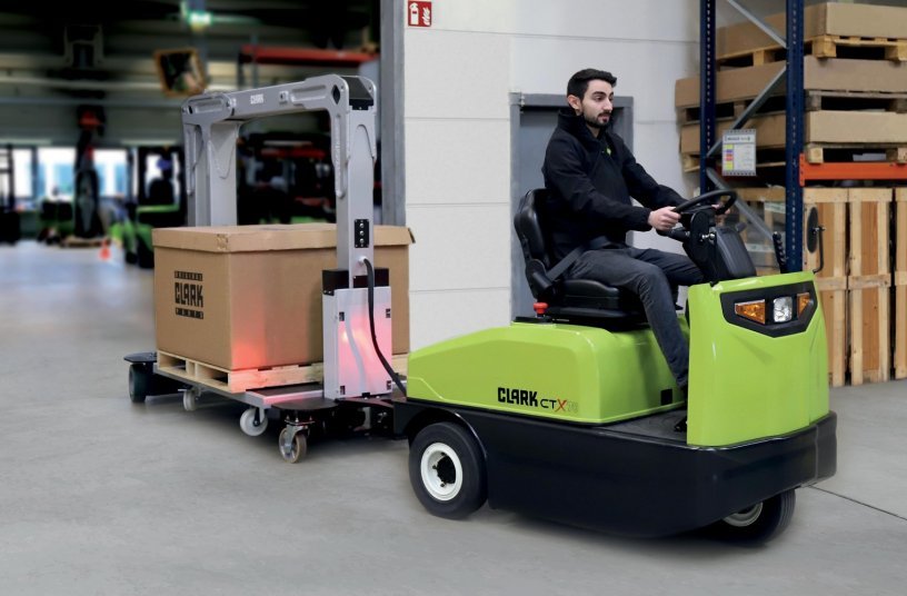 牵引车由克拉克(Clark)的CTX系列牵引车进行牵引。由于其紧凑的设计和良好的机动性,它们是非常理想的牵引车系统。坚固的牵引车具有出色的牵引力,并且由于强大的48伏交流牵引电机而具有高推力。低维护驱动系统专为最苛刻、运行安静的应用而设计的。符合人体工程学的驾驶员工作场所没有任何不尽人意的地方。驾驶员可以轻松地从两侧上下牵引车。工作场所本身具有充足的腿部空间、汽车式踏板布置和宽敞的储物空间。运行过程中的低振动水平和最低的噪音水平确保了驾驶的舒适性和安全性。CTX上可单独编程多达20个性能参数,包括加速、爬行功能和再生制动,以根据操作员的要求调整驾驶性能。其还有多种选项,例如带有警告灯的支架、舒适的驾驶室或连接/断开辅助装置,可确保车辆能够最佳地适应操作要求。