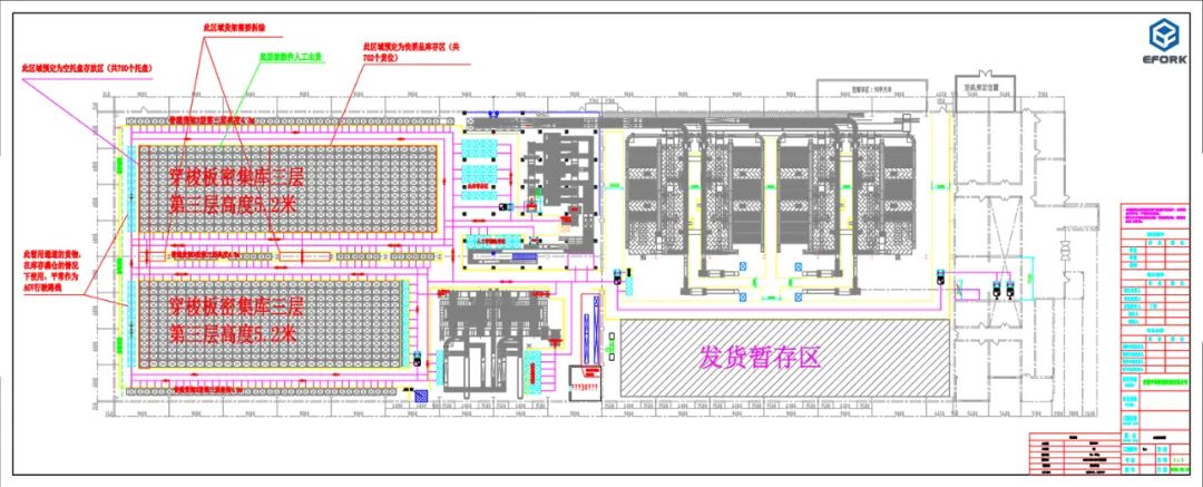 项目因场地限制需增加库容,将暂存库区设计为密集库区,使用穿梭车进行存储,AGV进行转运,该项目推进过程中主要涉及两个难点。