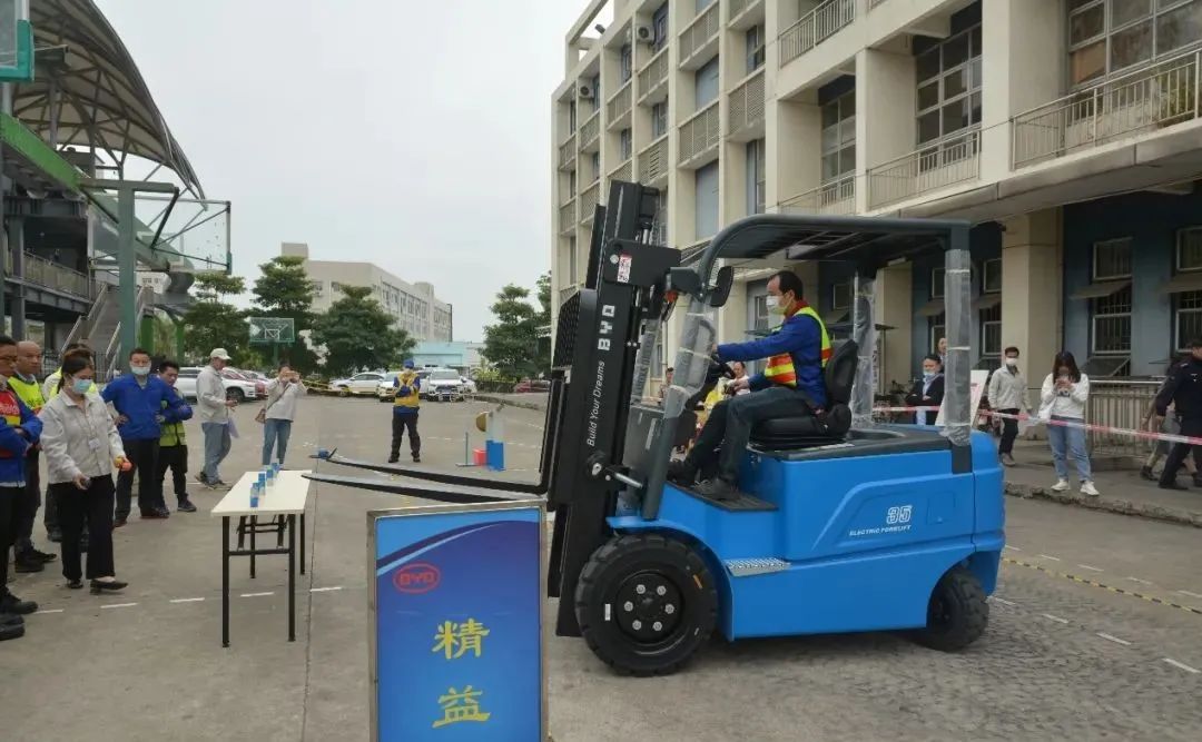 “精益‘球’精”考验叉车司机的定力、精确操控的水平。