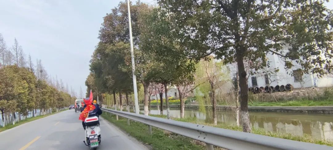 拉力赛途中,春日美景令人目不暇接。一路上经过的小河,在阳光下碧波粼粼,岸边的垂杨柳散开一头柔美的青丝,随风荡漾。江南富庶的经济环境,一幢幢小楼隐于树后,家门口的杏花不甘寂寞,从缝隙中努力探出头来,粉嫩的小花纷纷缀在枝头,小草爬满了后山坡,拉力赛队伍在中穿行,不免陶醉其中。