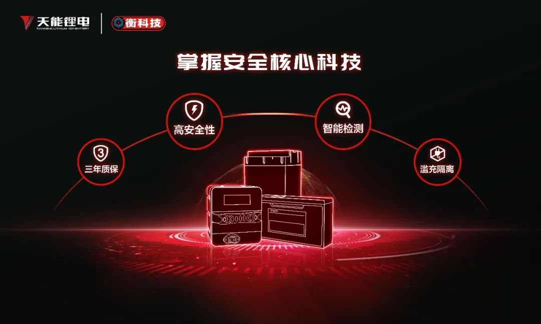 此次大会,天能锂电以解决用户痛点、满足市场诉求为出发点,提出“创新材料技术+稳定电芯技术+高安全结构技术+智慧BMS技术=安全科技锂电产品”的安全公式,重磅推出应用了这套安全公式的全新产品系列——“衡科技”安全强化锂电池系列。