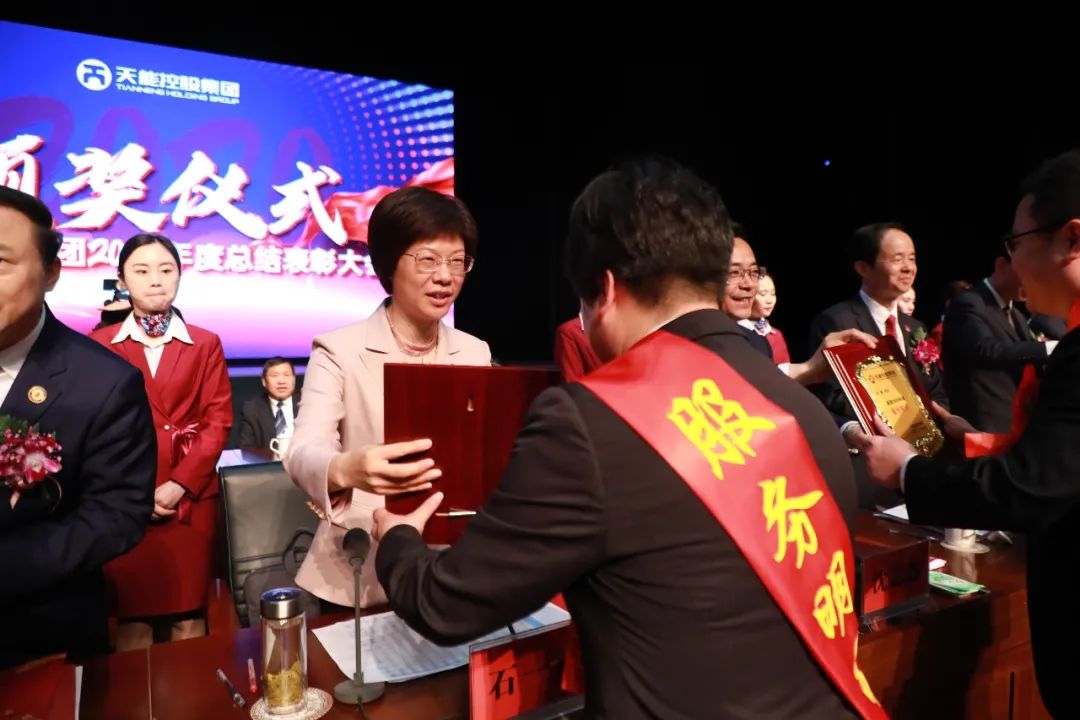 会议还宣读了表彰决定,隆重表彰了2020年集团各事业部、各分子公司等各条线涌现出来的先进典型,近400名先进集体和个人荣获了变革创新先进单位、数字化变革创新奖、质量先进单位、天能“奋斗者”、变革先锋、优秀文化大使等38类奖项。在欢庆的乐曲声中,获奖代表依次登上主席台,从董事长及各位领导手中接过了承载荣誉的奖牌。