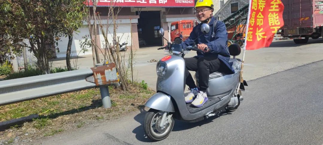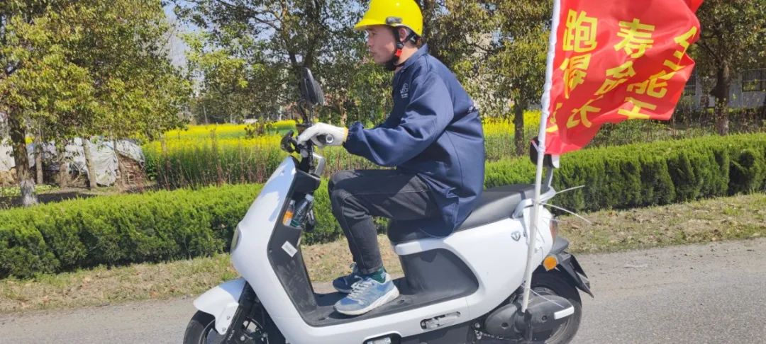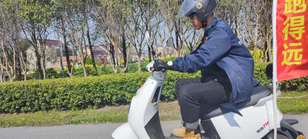 骑行过程中,风很大,尘土飞扬。因为逆风,车尾的旗帜拉成一条笔直的线,风中夹杂着春日独特的气味。