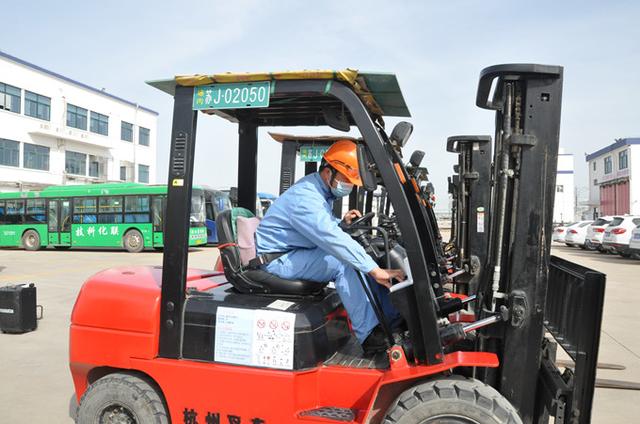 叉车操作人员现场示范操作装有智能化启动装置的叉车