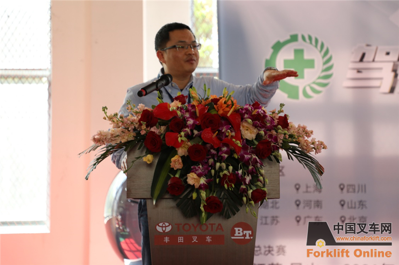 随后优迈达工业贸易(上海)有限公司庞礼魁副总经理对本次大赛发表致辞,他表示,非常荣幸能成为2021年丰田叉车驾驶技能大赛的首站,并代表优迈达欢迎大家的到来。同时对丰田叉车独有的安全配置进行简短介绍,并预祝今天参赛选手顺利晋级,在10月的全国总决赛中摘得桂冠。