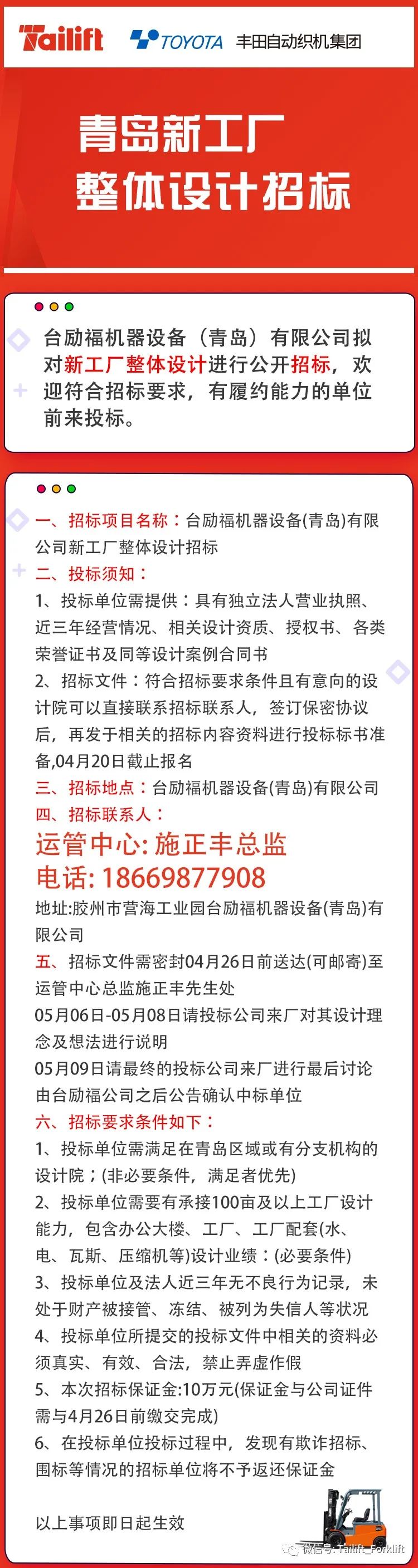 2021年台励福在胶州投资1.32亿美元建设新工厂,占地面积200亩,规划建筑面积15万平方米,2022年底投产使用。该项目将投入 TPS(丰田生产方式)、MES(生产信息化)、BPM(流程管理)、SCM(供应链管理)等信息管理系统,实现设备远程维护、生产流程在线管理、供应链信息更新等环节互联互通,将新的叉车园区打造成智能(互联)工厂。