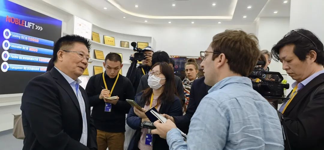 4月14日下午,来自日本、美国、英国、德国、新加坡、阿联酋、波兰6个国家的驻沪外国媒体走进诺力。董事长丁毅在整洁现代的诺力四期智能工厂接受外媒专访。
