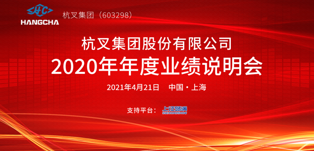 2021年4月21日,杭叉集团股份有限公司(股票代码603298)通过上证路演网“业绩说明会互动平台”成功举办线上“杭叉集团2020年度报告业绩说明会”,与广大投资者就公司2020年业绩表现、发展战略、未来规划等议题进行了坦诚充分的交流。出席本次业绩说明会的嘉宾包括公司董事长兼总经理赵礼敏先生,董事会秘书、总经理助理陈赛民先生以及公司副总会计师、财务负责人章淑通先生等。
