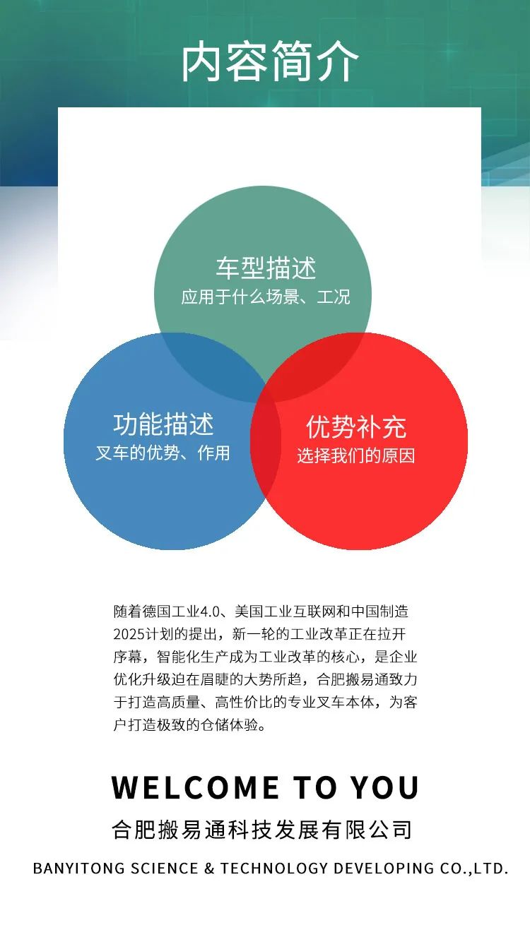合肥搬易通科技发展有限公司配件公司成立于2015年,主要生产电动叉车配件。目前涵盖所有电动叉车配件,主要品类有叉车电池,轮胎,电控,电机等20个大类,100多个品种的叉车配件。为国内最专业的电动叉车配件集成供应商。