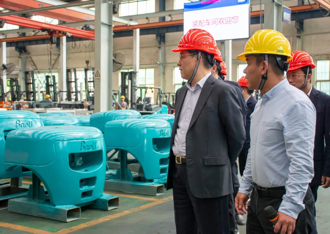 凯傲宝骊总裁朱旭东先生陪同市领导一行人来到宝骊车间,向他们介绍了凯傲宝骊近几年的发展历程和取得的成果。