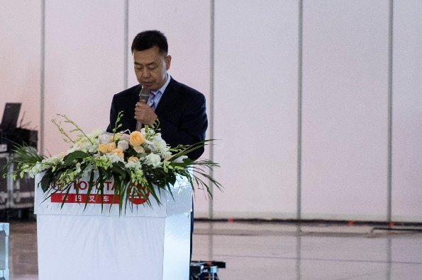 紧接着,云南道淳丰田叉车服务有限公司的总经理鞠维汉发表了致辞。鞠总回顾到四年前,丰田AGV进入云南市场,并于三年前成功进入烟草行业,目前运行良好,效果明显,希望本次活动能让大家更好的了解丰田产品及智能化解决方案,助推企业、行业自动化升级。