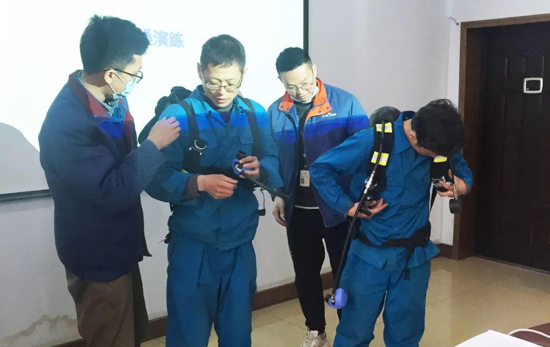 培训人员对2020年发生的有限空间作业事故案例进行了分析,并结合公司有限空间作业相关管理制度、工贸企业有限空间作业安全规范、有限空间作业安全指导手册等给予重点讲解。参训人员在现场进行了正压式空气呼吸器、安全带的操作演练,助力提升作业人员应急急救能力。