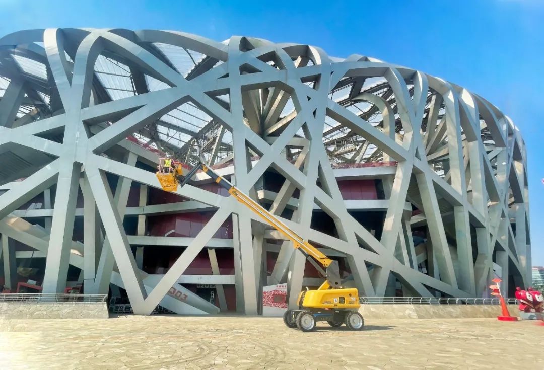 北京鸟巢作为世界级地标建筑,体积大、钢结构多,本次作业需要在三十天内完成鸟巢外围建筑受损面排查及维护,工作强度大,对高空作业设备整体性能要求极高。