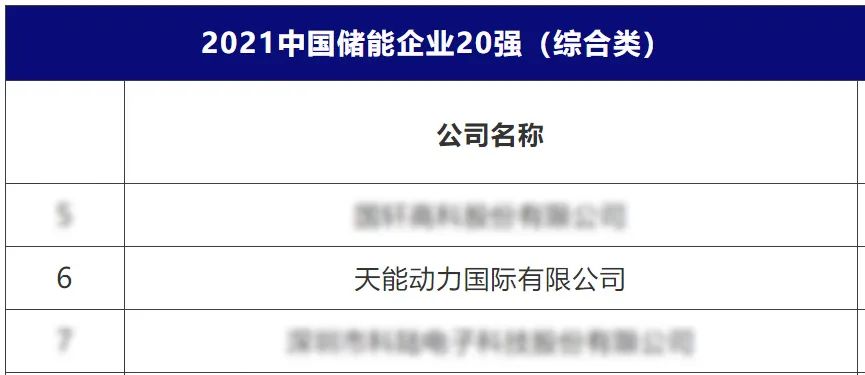天能上榜中国储能20强