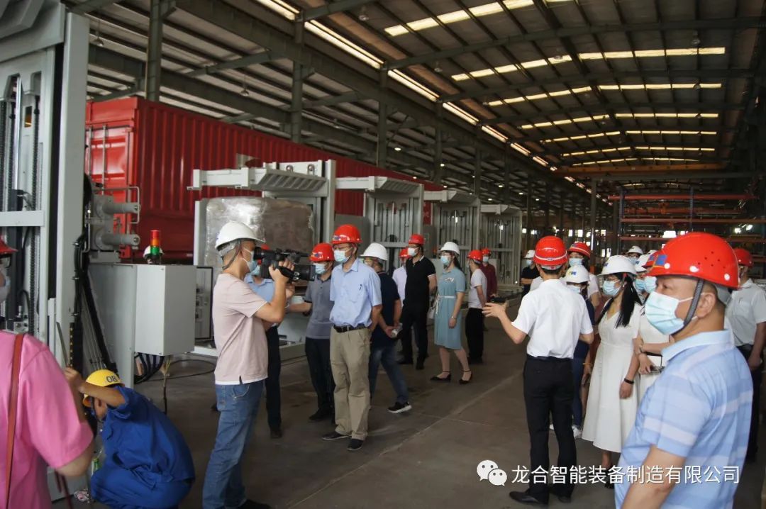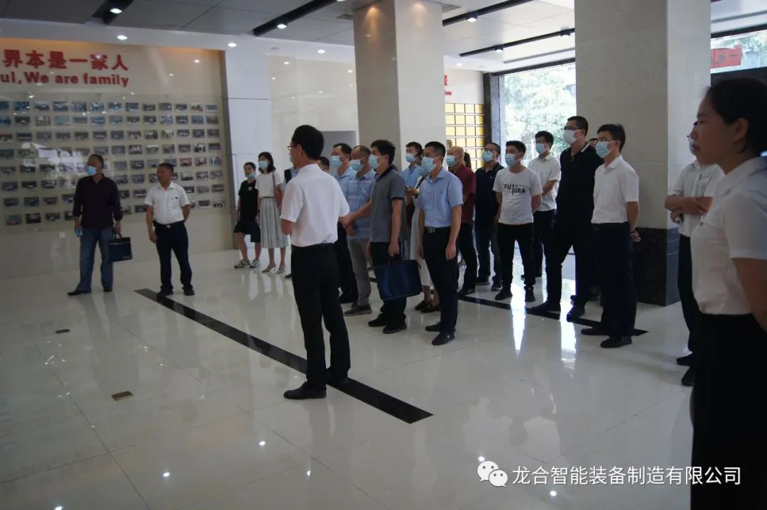 在会议开始前,公司总经理助理谢定柱引领交流团一行深入龙合智能企业文化展厅及生产车间,并详细介绍了公司的发展历程、重点项目建设及生产过程的质量控制管理等。