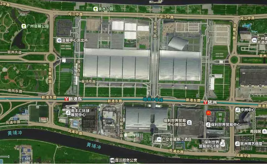 方法二:搭乘机场快线三号线,于“珀丽酒店”站下车,然后转乘地铁8号线抵达“琶洲站”,从A出口出站直达;