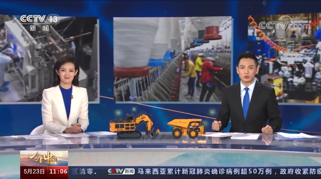 直播中,央视记者走进徐工集团,在近10分钟的时间里,700吨神州第一挖、1600吨起重机、无人驾驶压路机集群施工、起重机5G远程调试、大型集体婚礼、萌萌的产品模型包饺子动画展示……徐工“大国重器”呈现出创新驱动的硬气和魅力徐工的温度。