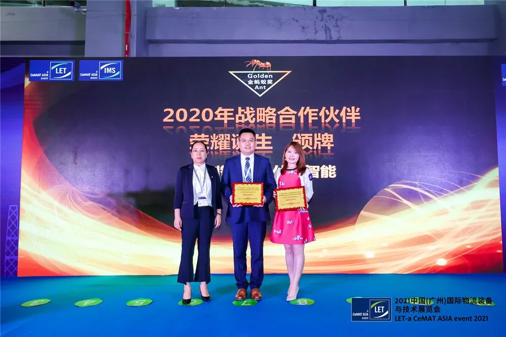 在颁奖环节中,主办方向兰剑智能科技股份有限公司、上海仙工智能科技有限公司颁发了2021年战略合作伙伴的奖牌,还为2021年最受用户欢迎之金蚂蚁装备·技术奖、2021年金蚂蚁制造业、电商业、流通业、物流业分别颁奖,最后,获奖嘉宾代表分享感言。