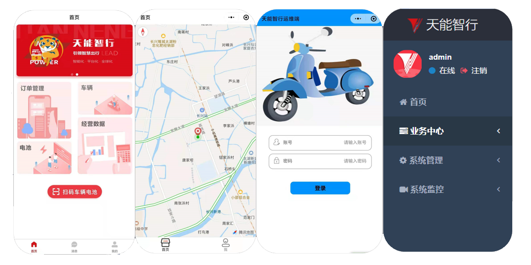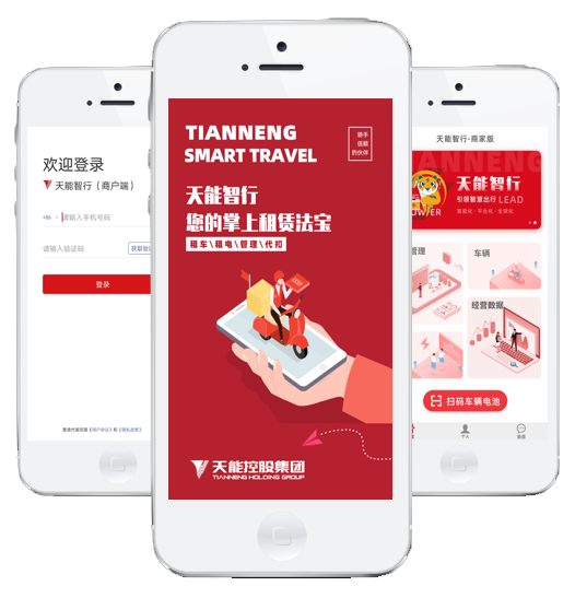 天能智行平台“大平台+好产品+新模式”,强大创新研发力为品牌赋能天能智行平台主要以商户端、骑手端、运维端、PC管理端四大终端为主。通过商户端APP将大锂电销售、租赁、商城、金融支持等全套解决方案提供给代理商、大客户,再通过客户端APP、骑手小程序,以互联网大数据方式为一线租车租电商提供支持。