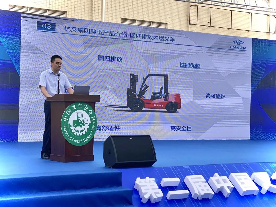 杭叉集团内燃叉车研究所所长李文锋做了主题为“绿色安全 智领未来”的技术交流,围绕杭叉集团技术创新体系、叉车安全典型创新成果、典型产品介绍等等进行交流,杭叉坚持不断创新,让叉车更绿色安全,也是为了更好实现杭叉的使命:让搬运更轻松!