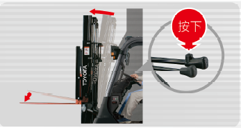 有了这个功能,新手操作员在每次作业中就无需不断调整水平插入操作,只需按下倾斜操纵杆上的自动水平按钮,那么进行门架前后倾作业时,货叉即可自动停止在水平位置。无需每次都要对齐调准,节约时间和精力,保证新手操作员的注意力可以用于其他更重要的方面。