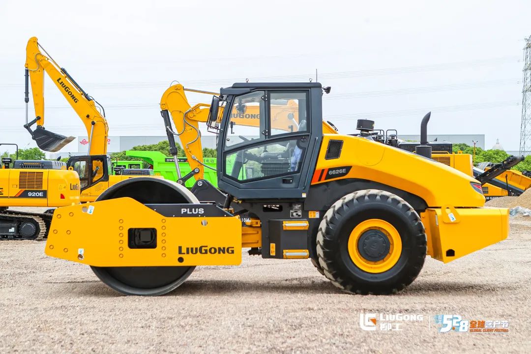 6626E PLUS压路机则采用了柳工第二代柔性激振器,质量轻,激振力不变,在保证偏心轴可靠性的同时,有效提升振动轮的寿命;整车具有自动起、停振功能和自动怠速功能,智能控制,可降低油耗;采用大激振力和大直径设计,压实效率高,压实质量好。
