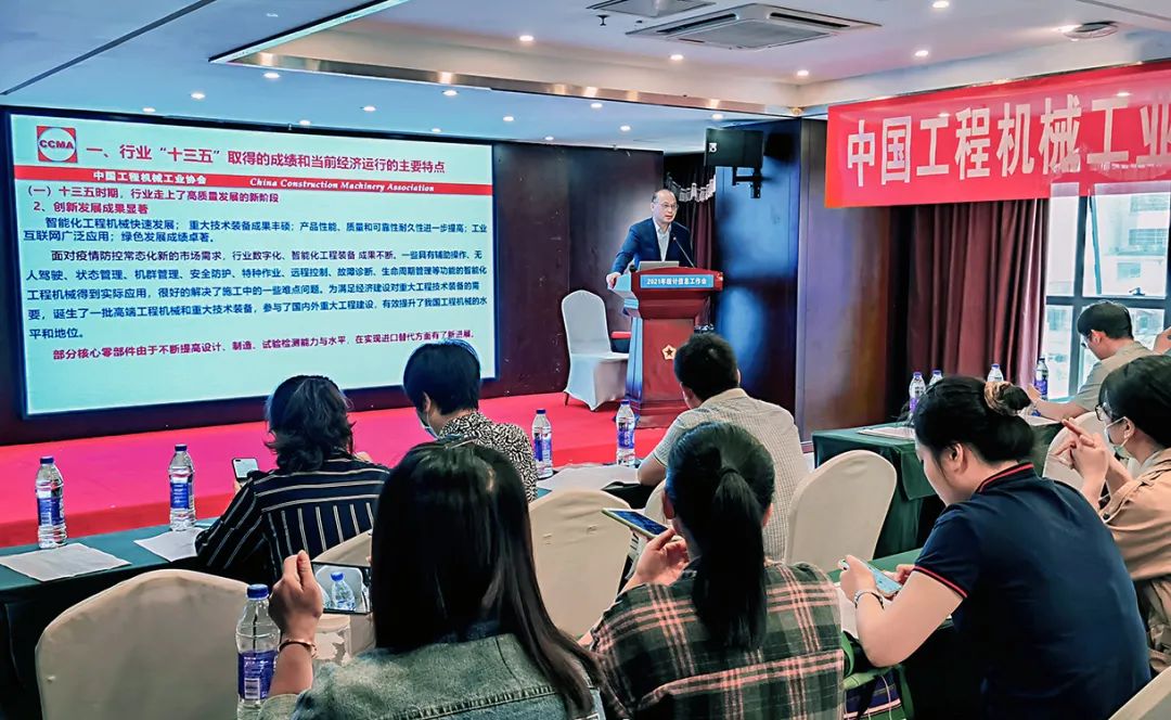 协会秘书长吴培国作“工程机械行业发展状况及未来发展趋势”的主题报告。他首先介绍了行业“十三五”取得的成绩和当前经济运行的主要特点,提出了“十四五”时期行业主要工作和协会秘书处的主要任务,最后对协会统计工作的提出了几点希望和要求,强调要高度认识开展好行业统计工作的重要性,不断完善和健全行业统计体系和制度,各分支机构要全面开展统计工作,不断提高统计工作的质量和水平,不断加强行业统计队伍建设,促进协会的统计工作再上新台阶。