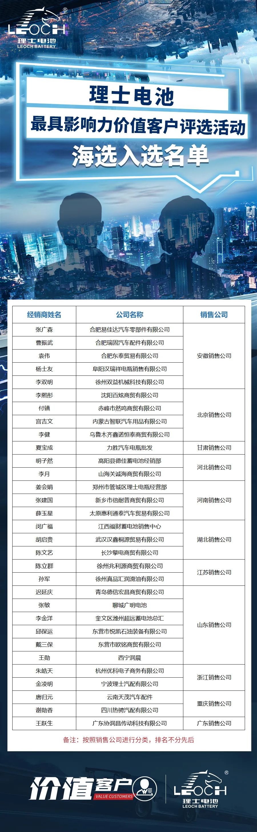 理士电池最具影响力价值客户评选活动海选名单最新出炉!
