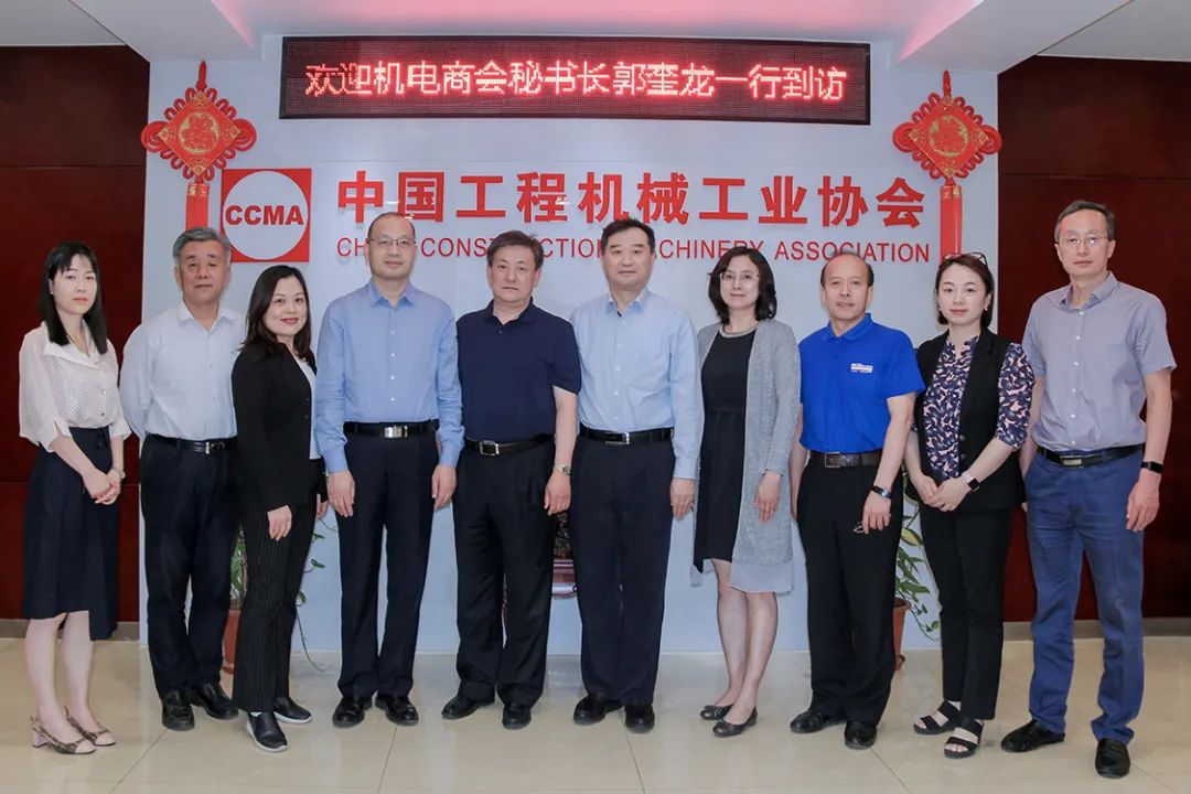 2021年6月3日,中国机电产品进出口商会(简称:机电商会)秘书长郭奎龙、副秘书长兼展览中心主任杨彤、工程农机分会副秘书长伍静芳、展览中心业务部经理向芳一行到访中国工程机械工业协会(简称:协会),受到协会会长苏子孟、秘书长吴培国、副秘书长吕莹的热情接待,双方进行了友好的交流。