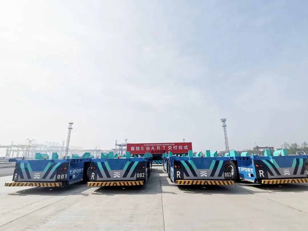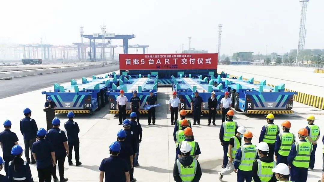九河下梢,渤海之滨。6月1日,徐工首批5台无人驾驶水平运输机器人ART,在天津港项目现场正式交付,将率先在C段码头启动测试运营。与此同时,本次中标的剩余15台ART正加速生产,于近期陆续交付至天津港。