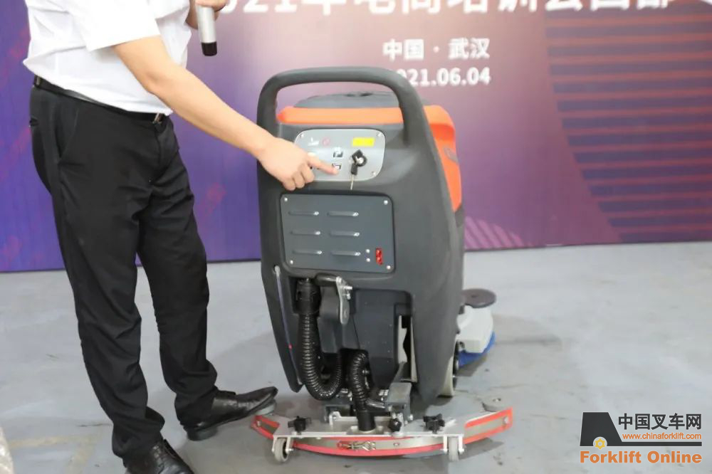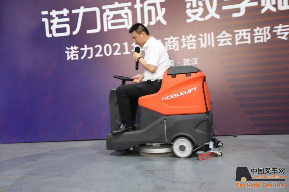第二款产品是诺力的洗地机,分为手推式洗地机和驾驶式洗地机。NB530手推式洗地机,是一款跨界的产品,这款全新自主设计的手推式洗地机,主要用于商超、写字楼、车站、酒店、医院等人流量大,狭窄通道较多的中小型场所使用,灵活穿梭,清洁更为细致。