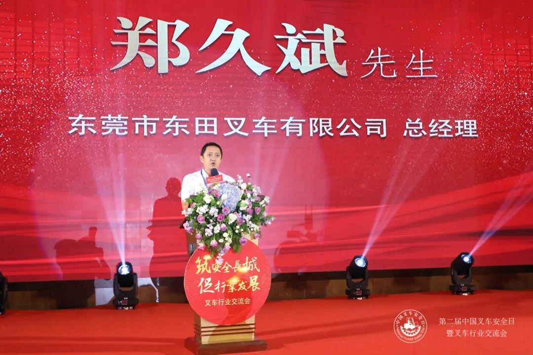活动组委会领导成员/东莞市东田叉车有限公司总经理郑久斌先生致欢迎词,郑总首先感谢各位来宾对本次活动的支持。作为一名叉车经销商,我深切地感受叉车操作不当造成人员伤亡和财产损失。所以对我们的客户以及我们的员工进行安全意识的培养,安全生产的宣传教育是我们的成功。