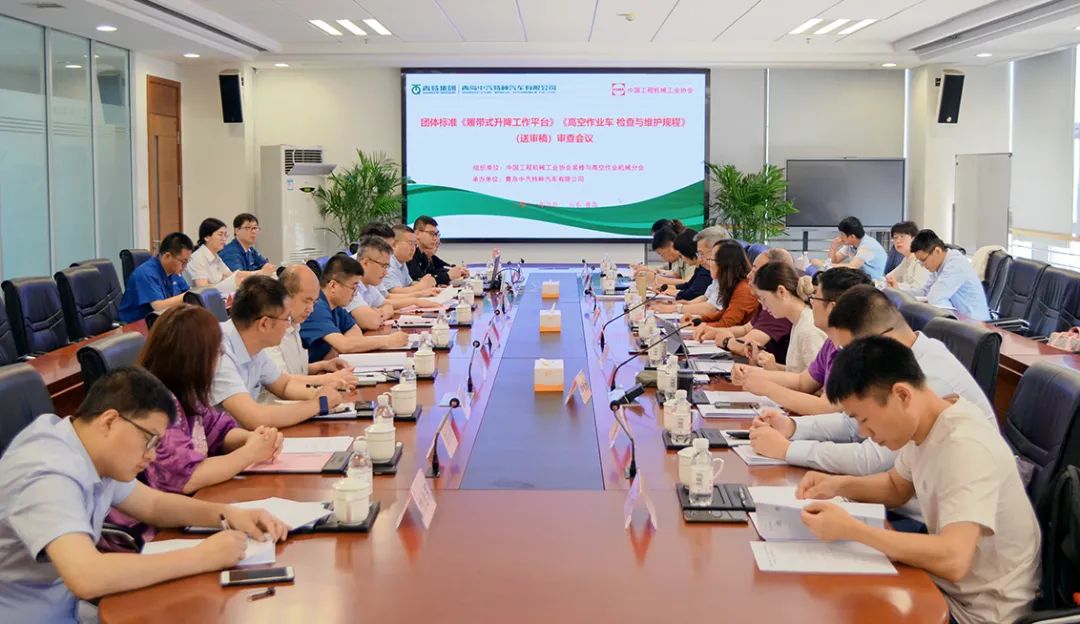 根据中国工程机械工业协会团体标准工作计划进度安排,中国工程机械工业协会装修与高空作业机械分会于2021年6月4日在山东青岛--青特集团,组织召开了《履带式升降工作平台》及《高空作业车 检查与维护规程》两项团体标准审查会。本次会议是对两项团体标准的制定工作进行汇报,对已编制完成的两项标准的送审稿进行审查。