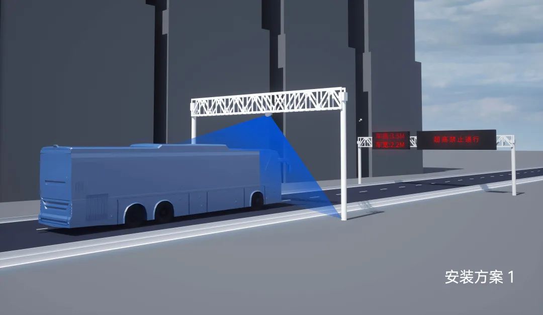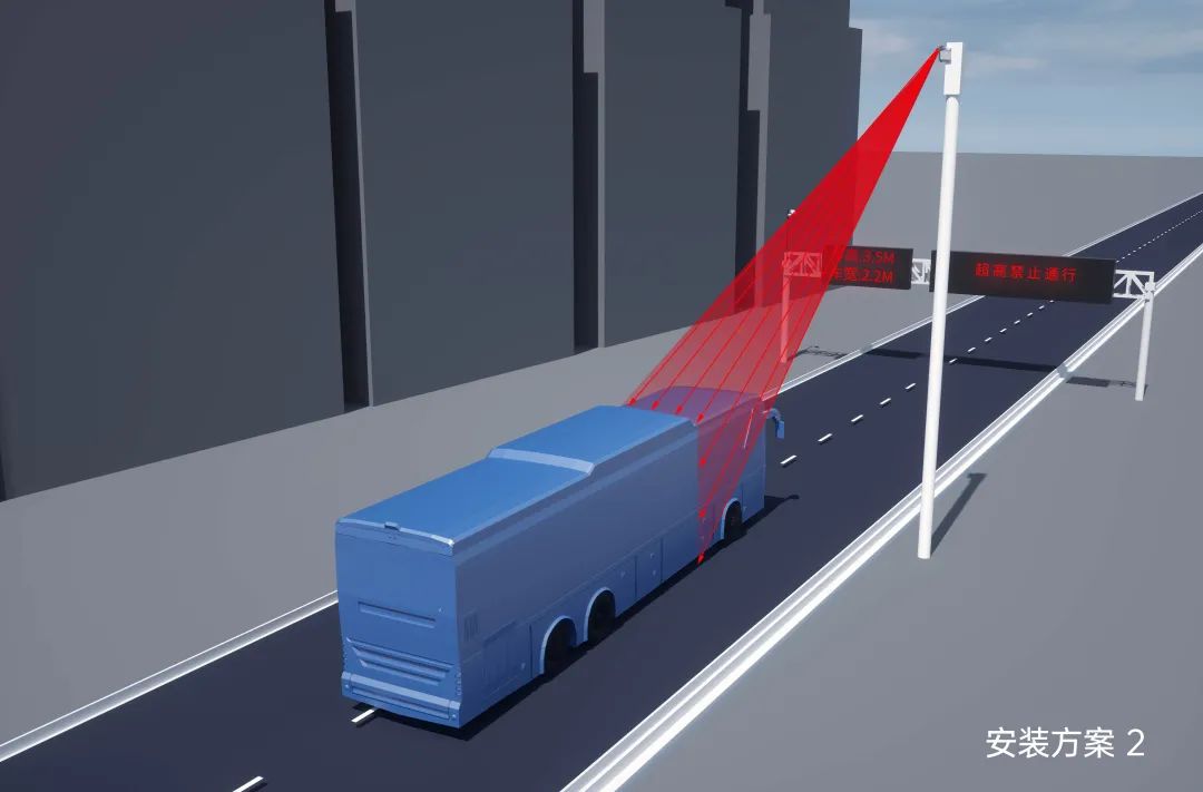 传统的限高杆只考虑如何死死地卡住超高车辆,没有考虑司乘的生命安全,一旦遇到雨雾天气人眼无法判断或者车速过快来不及判断的情况,极易发生车辆撞到限高杆上的事故。镭神智能针对高速公路入口、桥梁、隧道、涵洞与一些特殊路段的限高提出智能防撞解决方案,通过激光雷达的敏锐探测功能,对即将通过的超高车辆提前进行声光警告,有效将事故防范于未然。