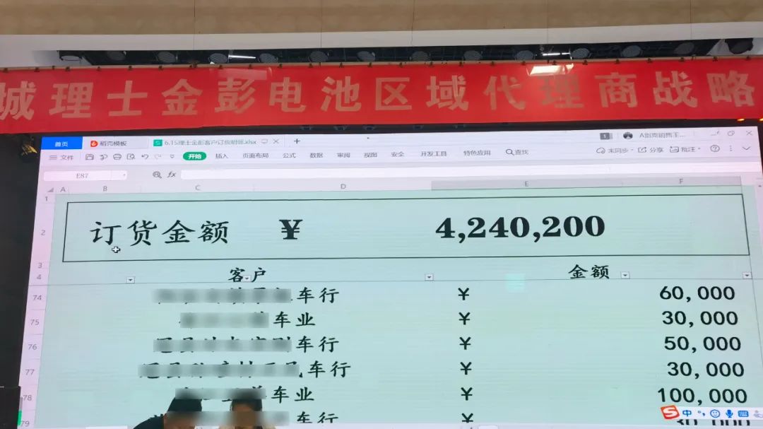 6月15日,以“携手理士 共赢未来”为主题的2021理士金彭电池聊城区域代理商战略大会在聊城阿尔卡迪亚温泉酒店如期举行,与200多位区域终端客户共同分享电池行业趋势与理士电池产品,展示理士国际硬核实力与产品性能优势,现场订货金额累计4240200元!