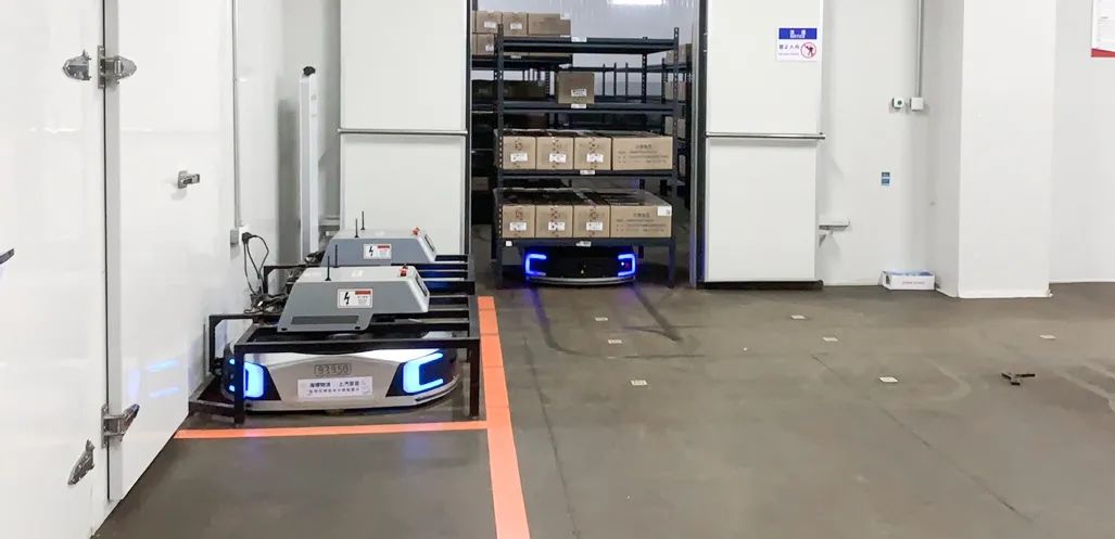 ▲极智嘉机器人在光明花博保供冷链智慧仓运作