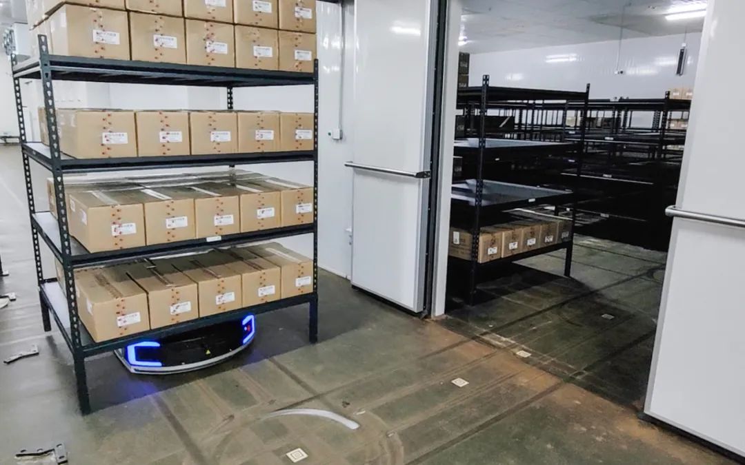 ▲极智嘉机器人在光明花博保供冷链智慧仓运作
