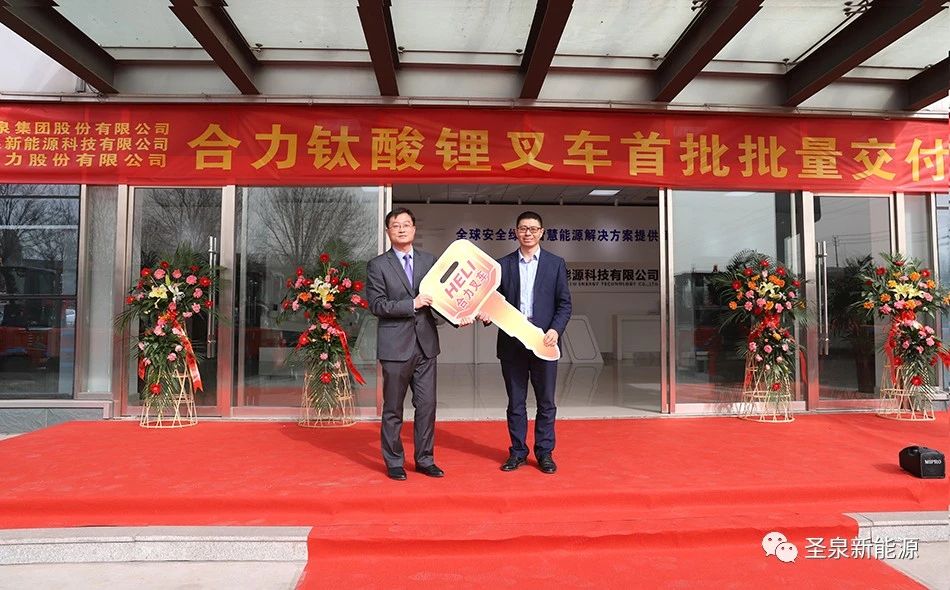 3月16日,山东圣泉新能源科技有限公司与世界叉车行业前七强安徽合力股份有限公司成功举办电动叉车钛酸锂电池系统批量交付仪式。安徽合力党委委员、山东齐鲁合力叉车有限公司董事长华丙松,山东齐鲁合力叉车有限公司总经理房少君,圣泉集团副总裁、圣泉新能源董事长肖猛,圣泉新能源总经理刘绍钢等出席了本次交付仪式。本次仪式交付了首批研发并经过试运行验证、性能优越的18套电动叉车钛酸锂电池系统。根据双方签订的战略合作协议,圣泉新能源将陆续交付300套钛酸锂电池系统。