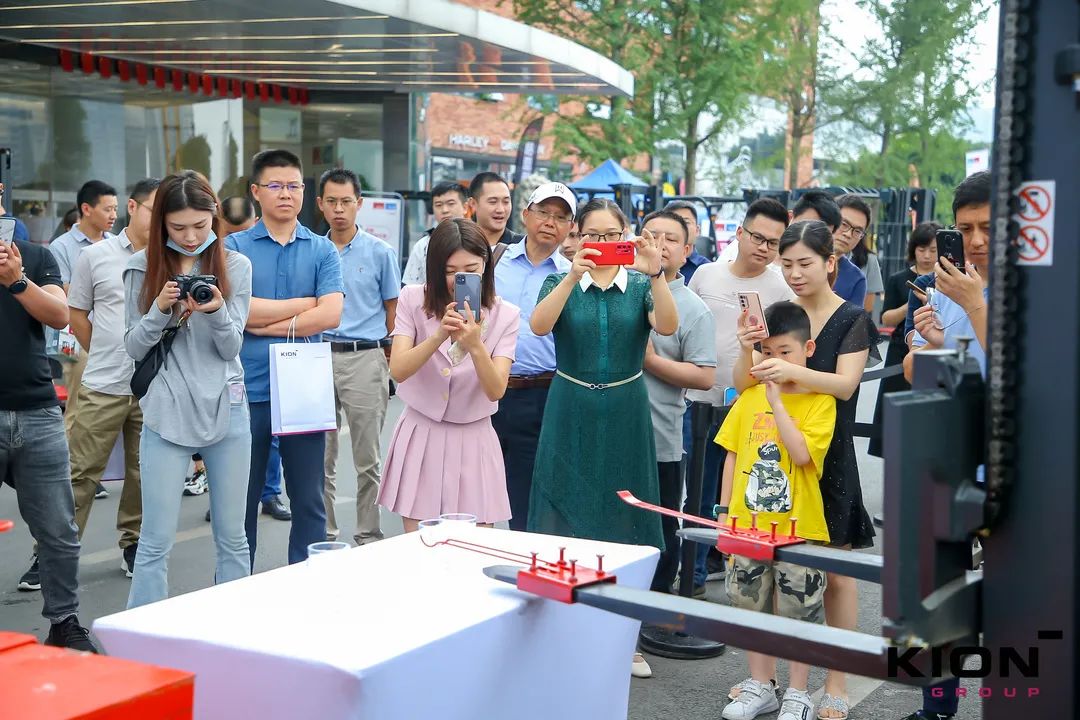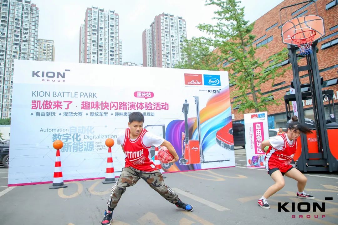 凯傲快闪店外自由潮玩区,专业演员们表演的花样篮球更是将气氛推向了顶峰。各种高难度技能,吸引了大批观众摩拳擦掌。同时,潮玩区独具特色的叉车主题打卡墙也让大批观众驻足拍照留影。