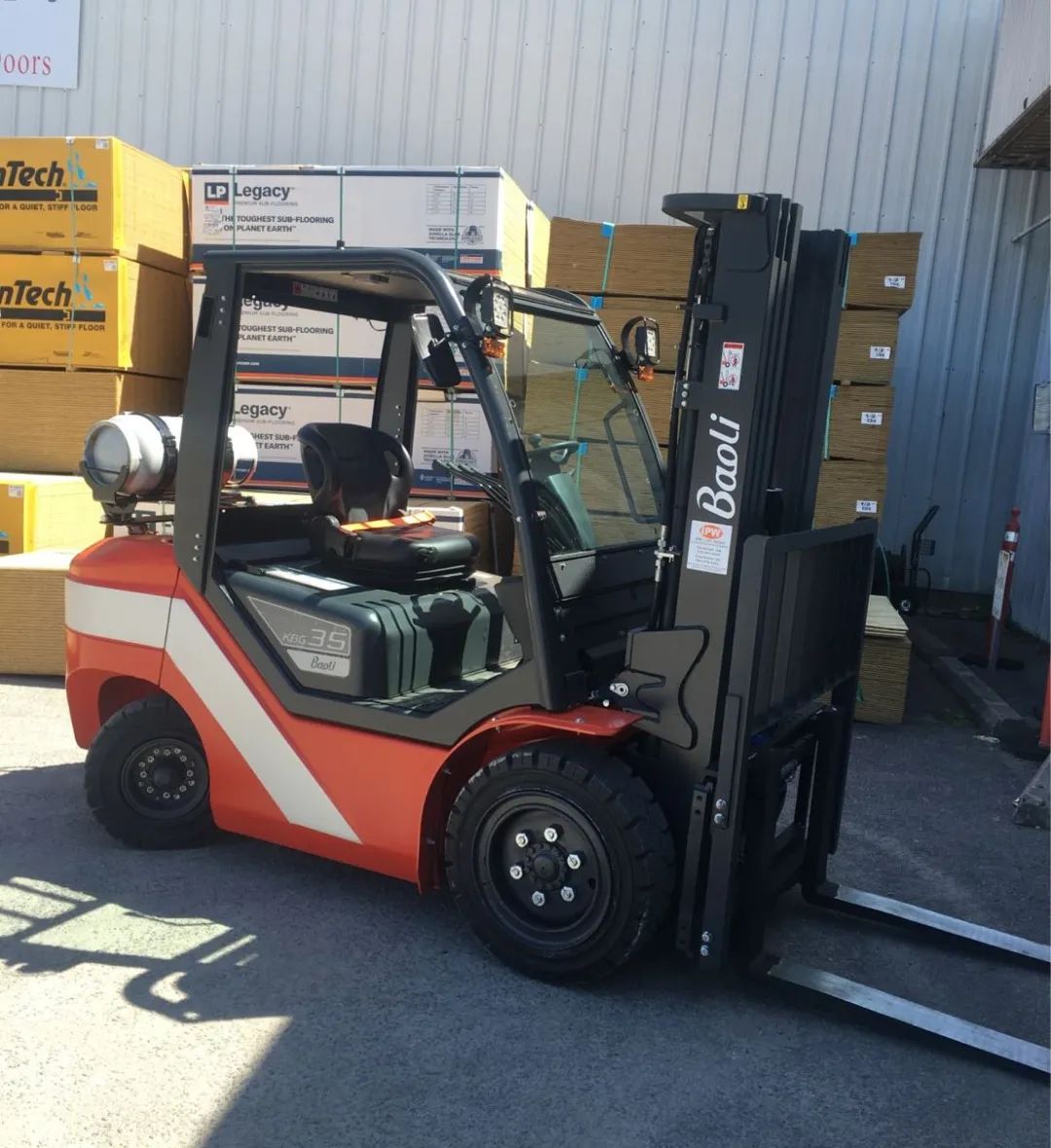 北美经销商处整齐排列的宝骊5T汽油车KBG50,以及在木材客户处正在运行工作的宝骊KBG35。宝骊汽油叉车不仅动力强劲,且更环保,适用行业更广。