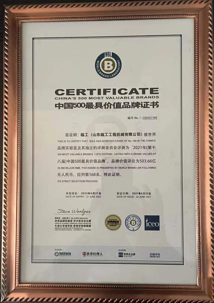 6月22日,由世界品牌实验室(World Brand Lab)主办的第十八届“世界品牌大会”在北京隆重举行,成为企业共同探讨品牌、经济、管理话题,共享世纪战略大餐的盛会。在会上发布的2021年《中国500最具价值品牌》分析报告中,临工以503.66亿元的雄厚实力连续8年再度上榜,品牌价值较上年提升87.77亿元,市场表现与品牌公信力获得高度肯定。